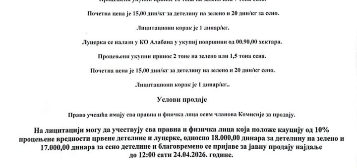 Srednja škola u Blacu daje Oglas o javnoj prodaji crvene deteline i lucerke: