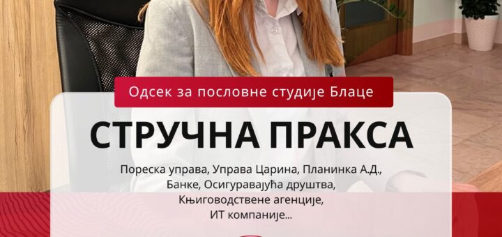 Odsek za poslovne studije Blace poseban značaj posvećuje organizovanju stručne prakse u brojnim preduzećima i institucijama sa kojima ostvaruje dugogodišnju...