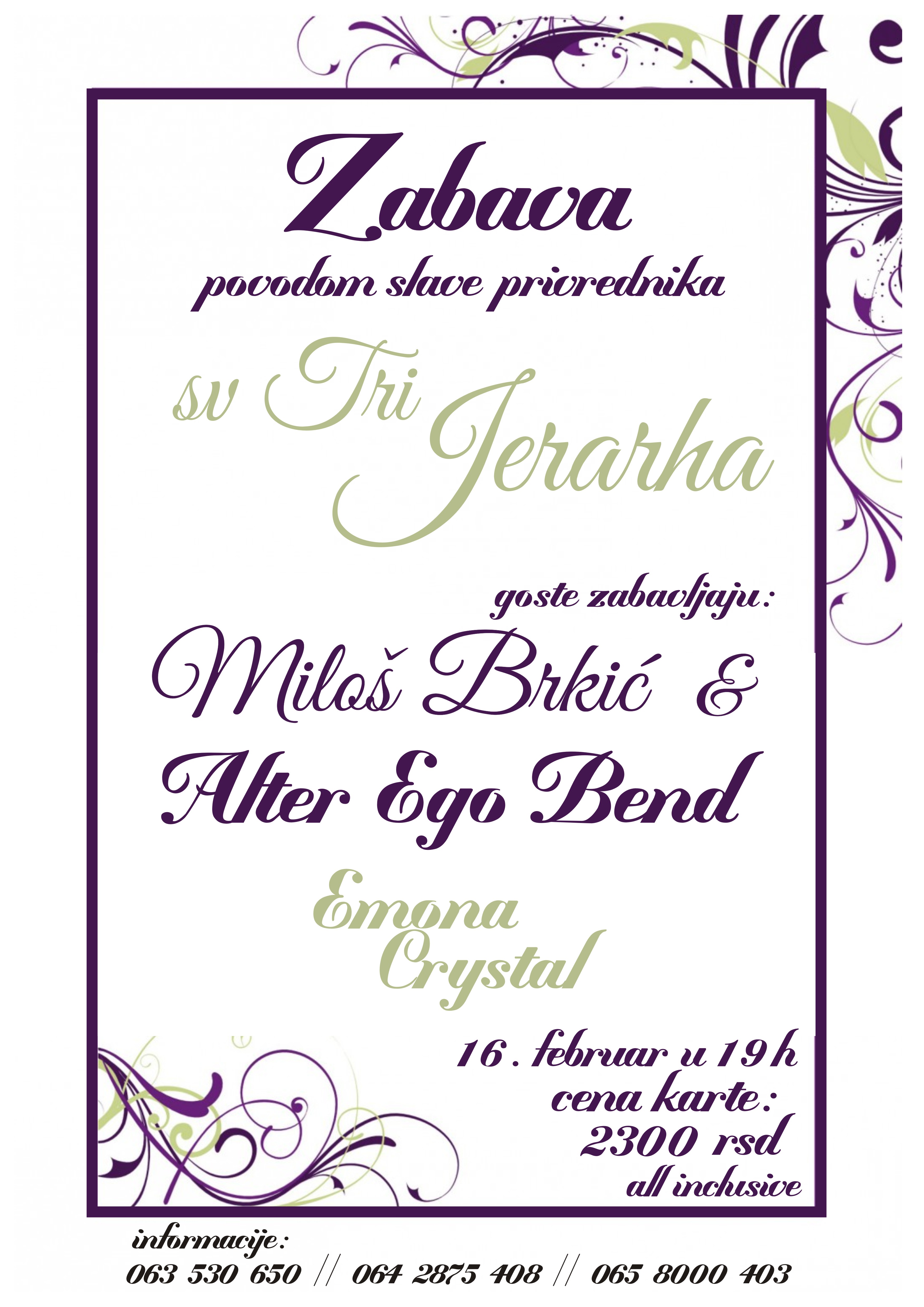 Sve bliže informacije vezano za proslavu Sveta Tri Jerarha mogu se dobiti na sledeće telefone: