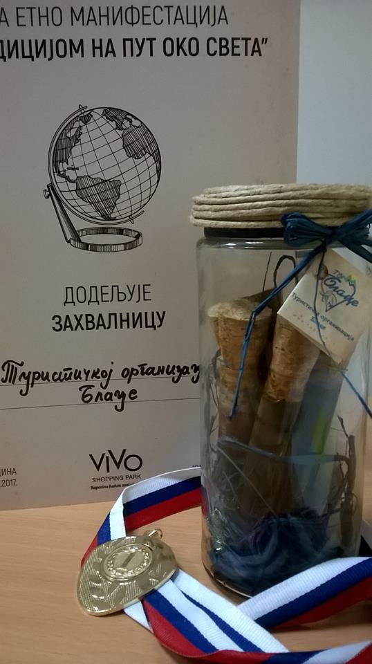 Turistička organizacija Blace na sajmu turizma u Jagodini “Tradicijom na put oko sveta”osvojila je prvo mesto i zlatnu medalju za suvenir – Blački testeri, kojim se promovišu ukusi hrane sa našeg podneblja, saznajemo u turističkoj organizaciji – Blace.