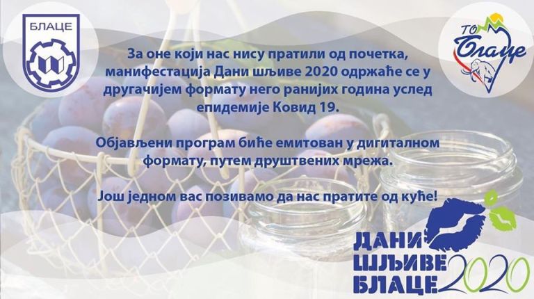 Jedinstveno u Blacu: Dani šljive – Blace 2020 u digitalnom formatu