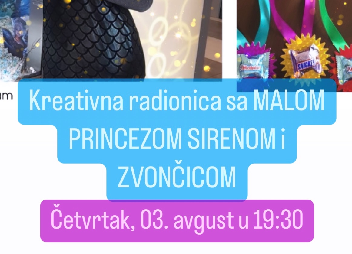 -U okviru Kulturnog leta, Pozivamo sve mališane da u četvrtak, 03. avgusta u 19:30 dodju ispred Kulturnog centra Drainac, da zajedno sa MALOM PRINCEZOM SIRENOM I ZVONCIČOM pravimo morske slajmove