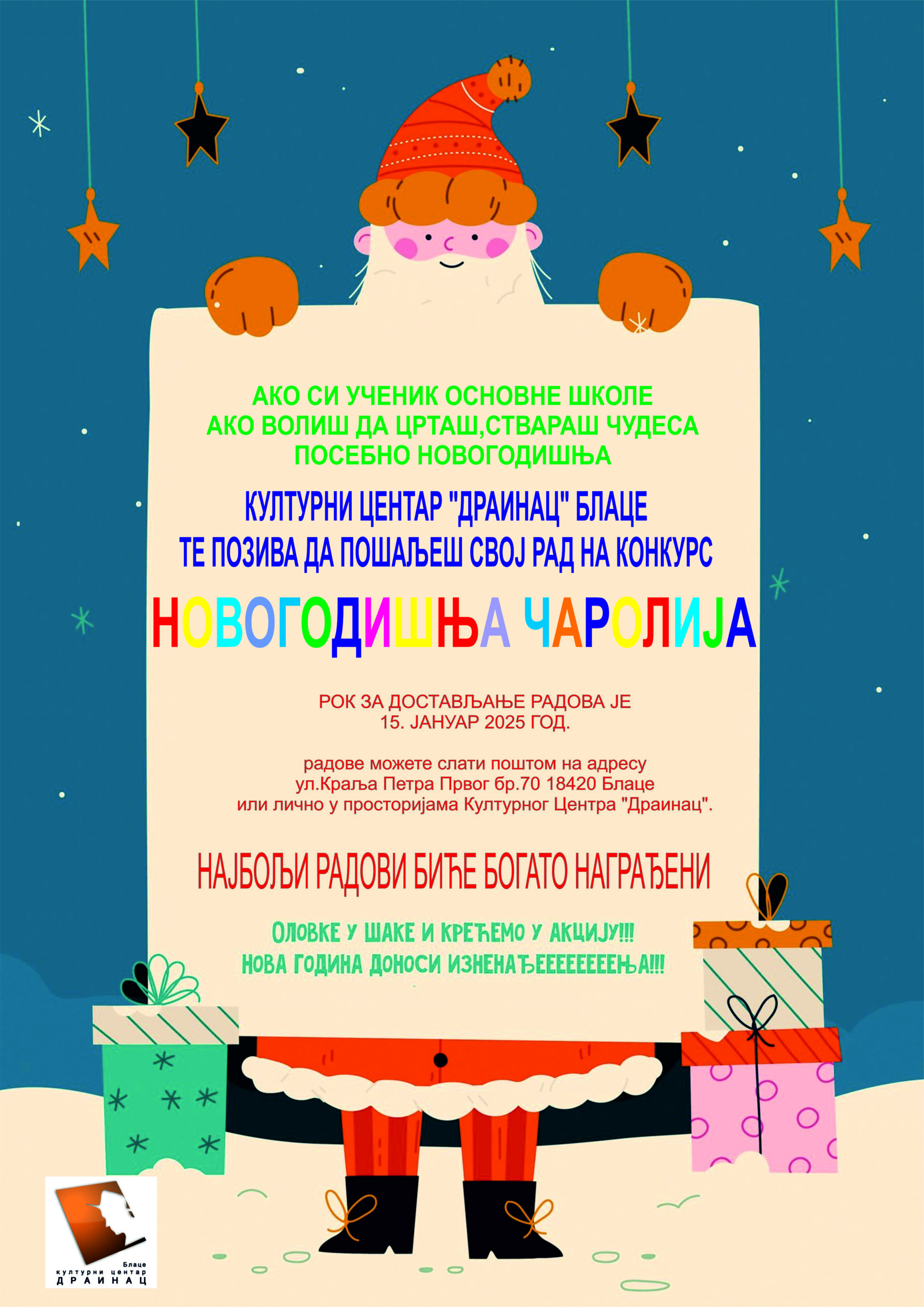 Kulturni centar Drainac Blace te poziva na – NAGRADNI LIKOVNI KONKURS TEMA RADA „ NOVOGODIŠNjA ČAROLIJA“