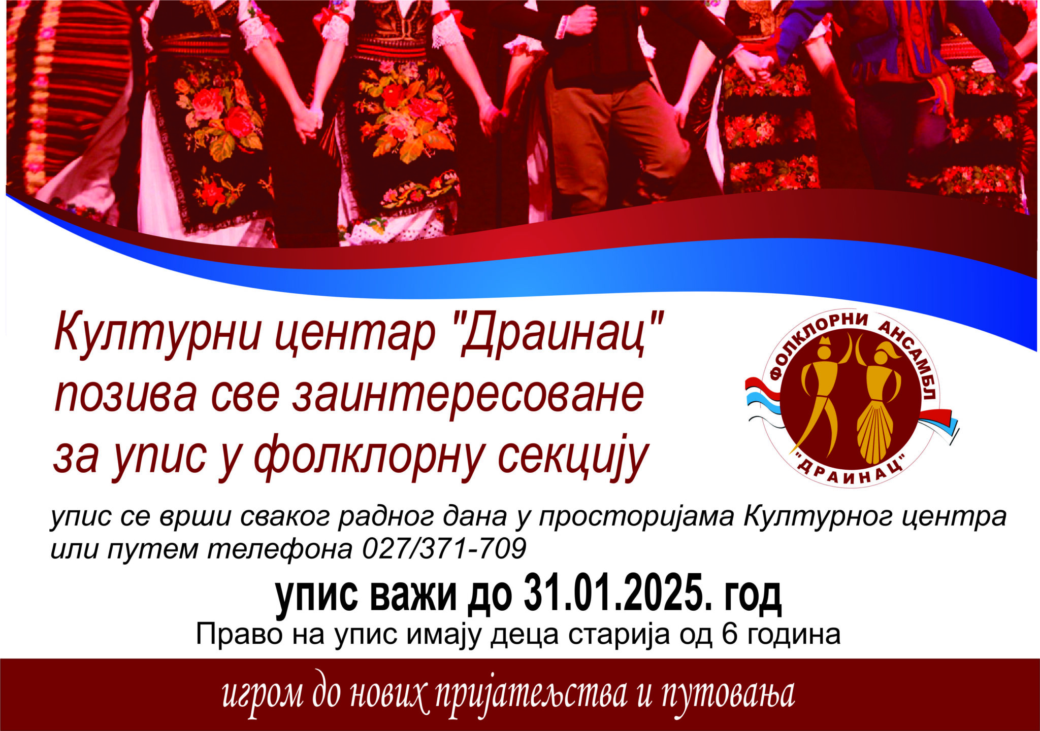 Kulturni centar Drainac Blace poziva sve zainteresovane na upis na folklornu sekciju.