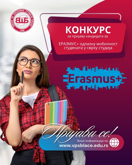 Odsek za poslovne studije Blace:Otvoren konkurs za prijavu studenata za Erazmus+ odlaznu mobilnost u svrhu studija
