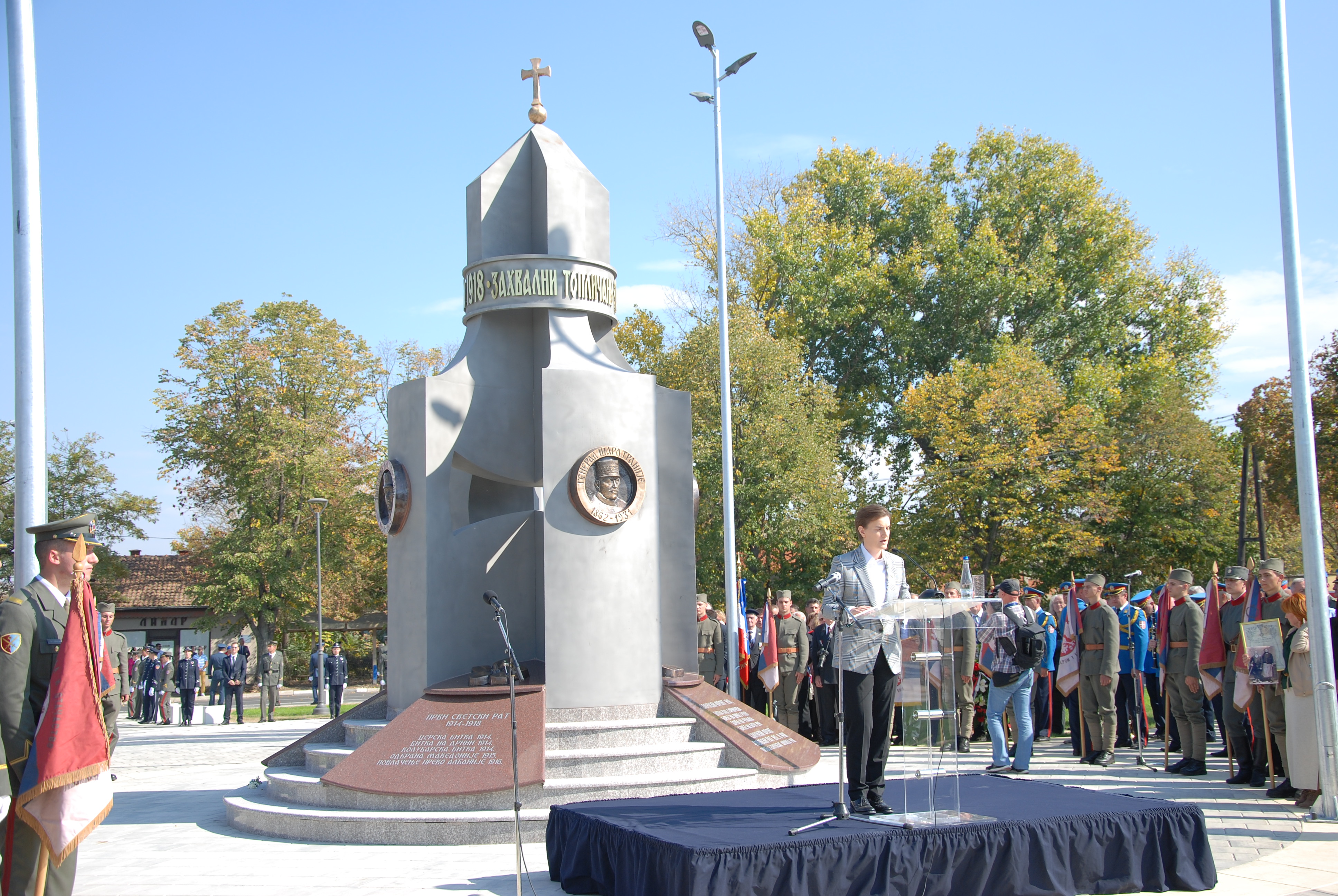 -Kada stanemo ovde, pred ovaj spomenik, pred ovu slavu, hrabrost i žrtvu, pred živote položene da bi mi imali slobodu i mir imamo pravo da uradimo sve za našu Srbiju, sebe, svoje porodice, svoje dostojanstvo i za one koji dolaze iza nas. To je ovde iskovano čelikom i krvlju. Ko od nas ovde sme da odustane od jake Srbije, Srbije koja iznad svega želi mir, trud, znanje, upornost, Srbije koja poštuje različitosti, koja veruje i brani svoje principe i uvek pomaže drugim, rekla je predsednica Vlade i podvukla da je danas Srbija jača nego što je bila juče, a nešto malo slabija nego što će biti sutra.