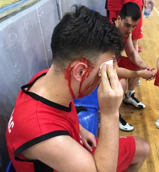 „Ragbi“ meč na košarkaškoj utakmici u Vranju između KK Vranje i Jastrebac Blace