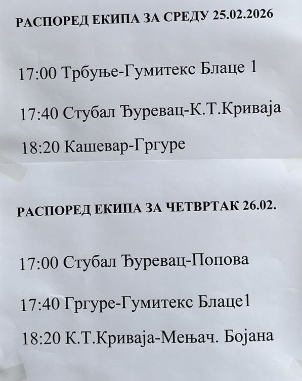 Raspored za četvrtak 24.februar: