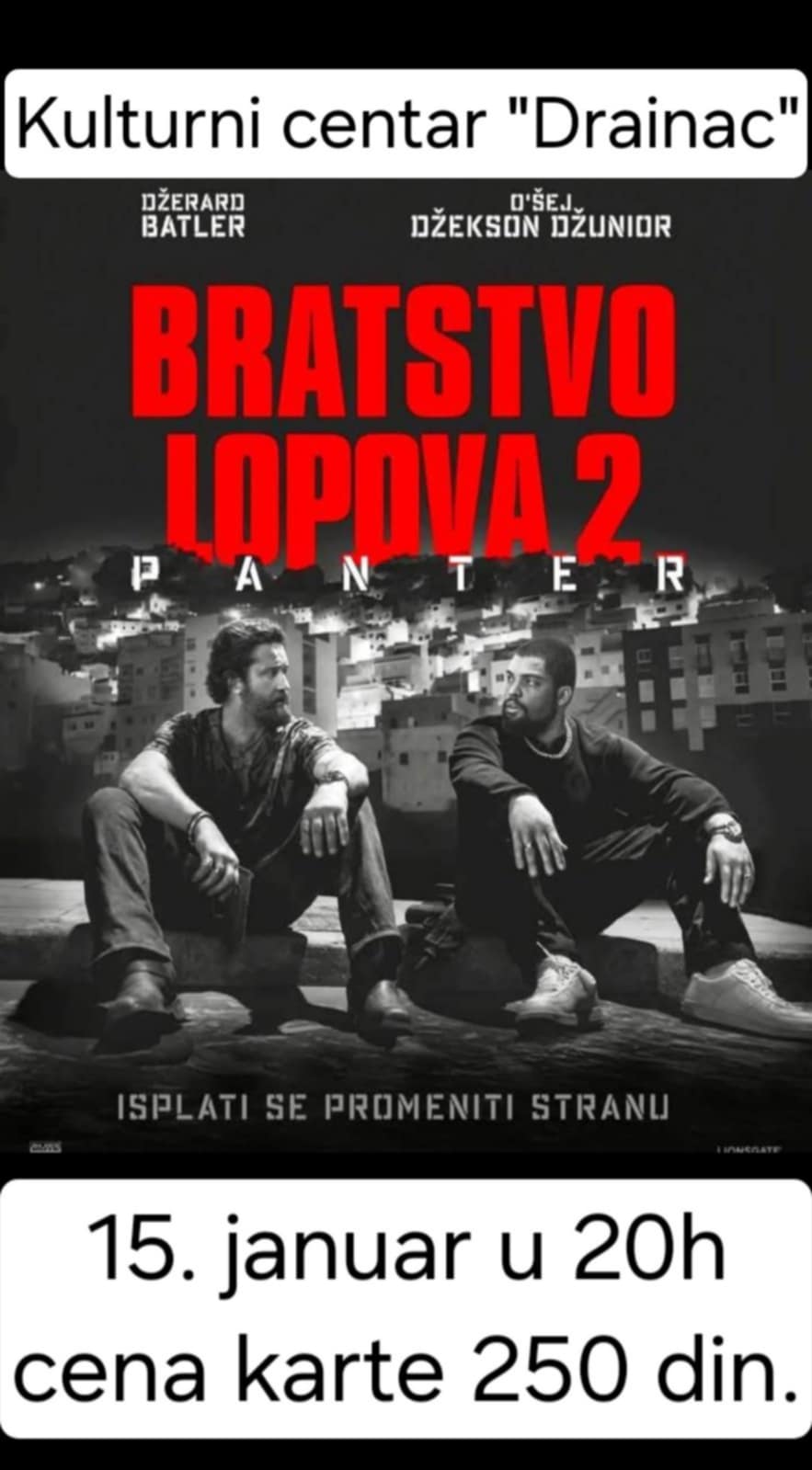 U bioskopu Kulturnog centra Drainac u Blacu film – Bratstvo lopova 2. Projekcija 15.januara od 20 časova. Cena karte 250 dinara.