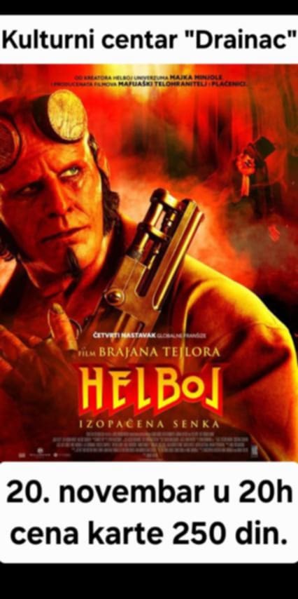U bioskopu Kulturnog centra Drainac u Blacu film – Helboj : Izopačena Senka. Projekcija 20.novembra od 20 časova. Cena karte 250 dinara.