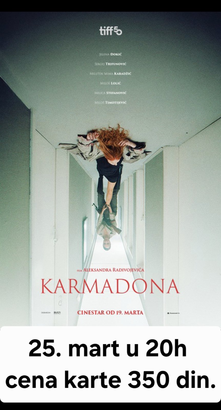 U bioskopu Kulturnog centra Drainac u Blacu film – Karmadona. Projekcija 25.marta od 20 časova.Cena karte 350 dinara.
