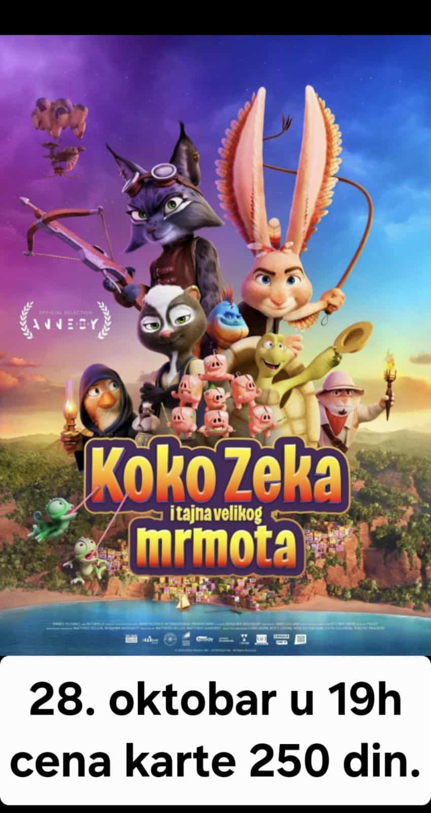 U bioskopu Kulturnog centra Drainac Blace film – Koko Zeka i tajna velikog mrmota. Projekcija 28.oktobra od 19 časova. Cena karte 250 dinara.