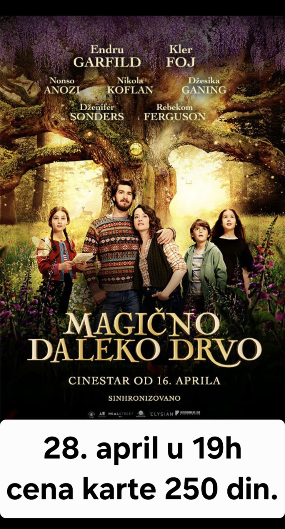 U bioskopu Kulturnog centra Drainac u Blacu film – Magično daleko drvo. Projekcija 28.aprila od 19 časova. Cena karte 250 dinara.