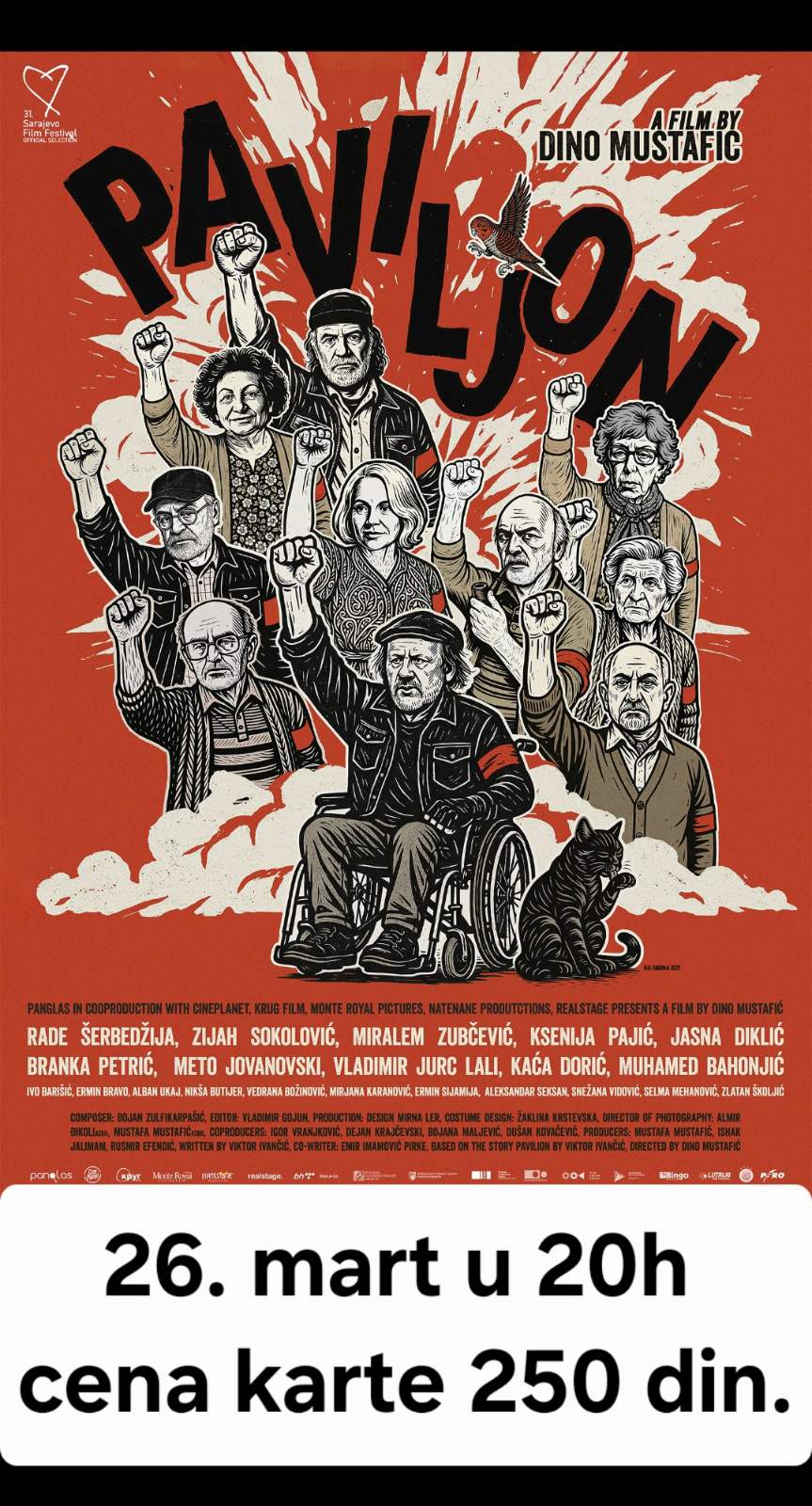 U bioskopu Kulturnog centra Drainac u Blacu film – Paviljon. Projekcija 26.marta od 20 časova. Cena karte 250 dinara.