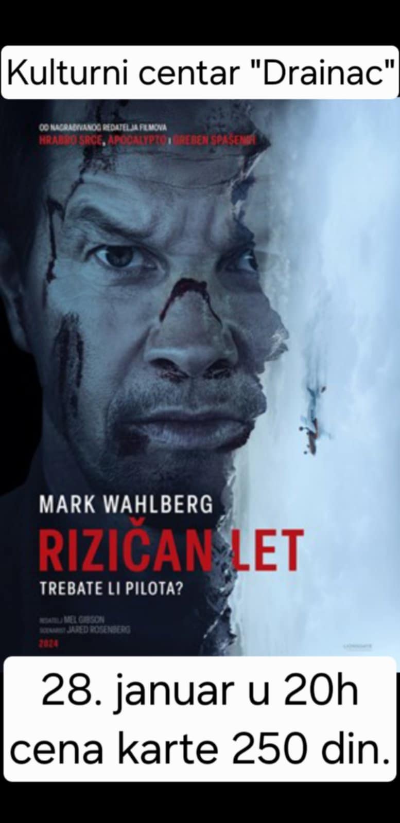 U bioskopu Kulturnog centra Drainac u Blacu film – Rizičan let.