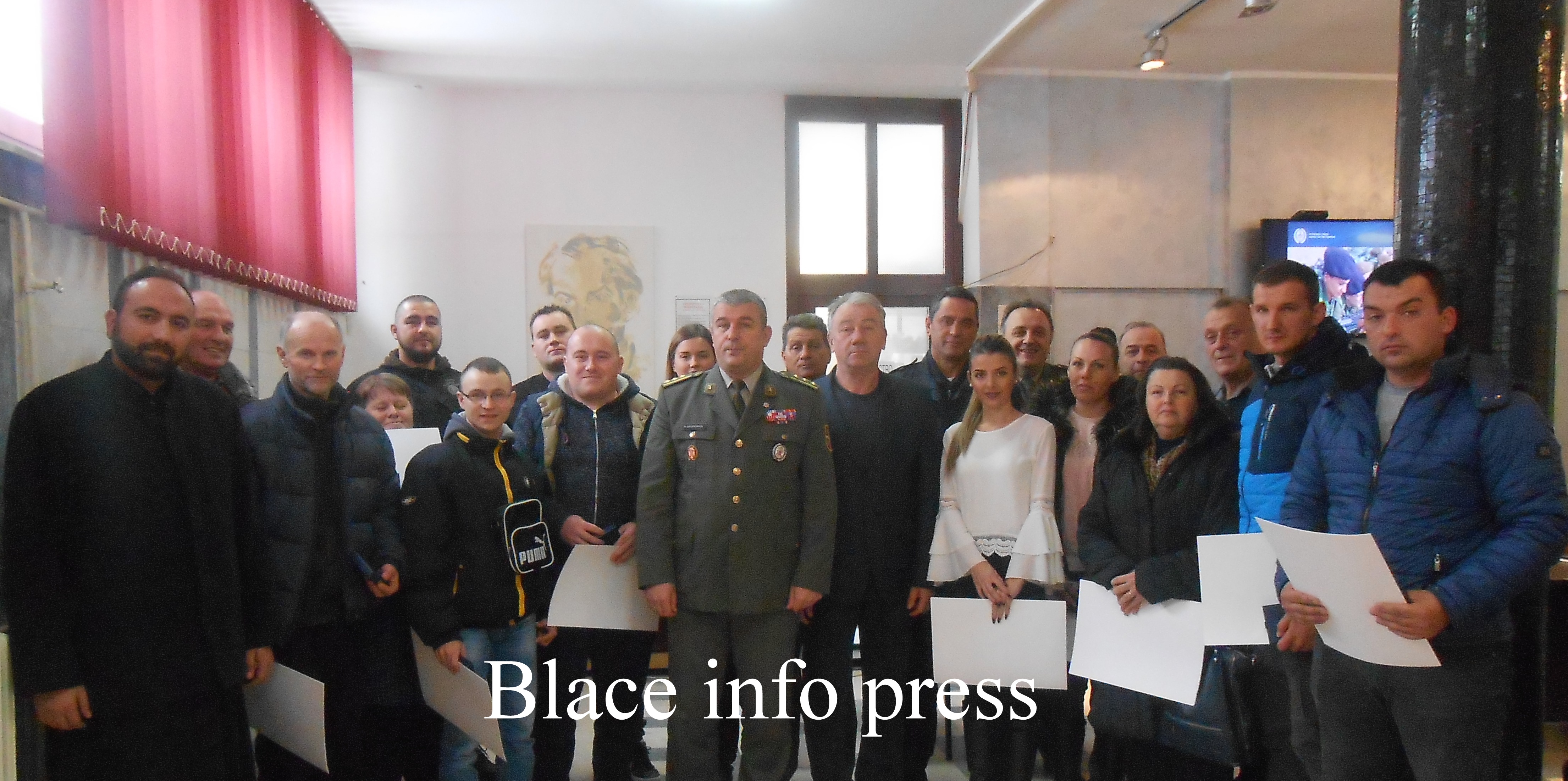 Na današnjoj svečanosti uručeno je 13 Značaka i Zahvalnica otadžbine vojnicima koji su dobrovoljno služili vojni rok sa oružjem u periodu od 2011- 2015.godine. Priznanja su uručivali pomoćnik predsednika Opštine Blace Miroljub Marković i pukovnik Nenad Marković.