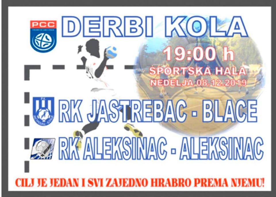 U nedelju u Blacu u sportskoj hali „ Čika Duško Jovanović“ derbi kola prve rukometne lige Istok – RK Jastrebac Blace – RK Aleksinac.