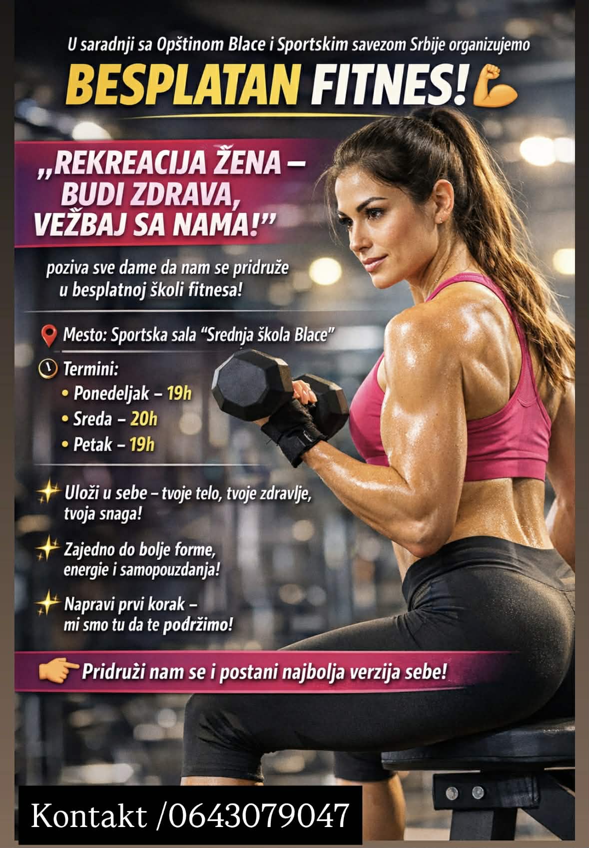 U saradnji sa Opštinom Blace, Sportski savez Srbije organizuje besplatni fitness u Blacu